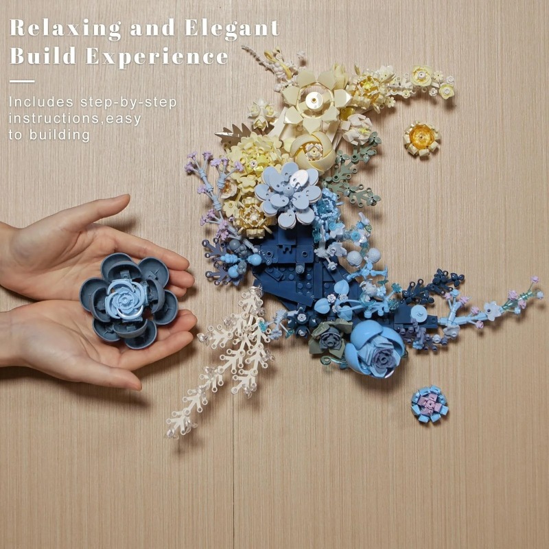 Blauwe Maan Bloemen Bouwset, Botanische Collectie Halvemaanvormige Kunstbloemen Bouwblokken Kit Compatibel Met Lego Voor Volwassenen Woondecoratie Muurkunst Decoratie