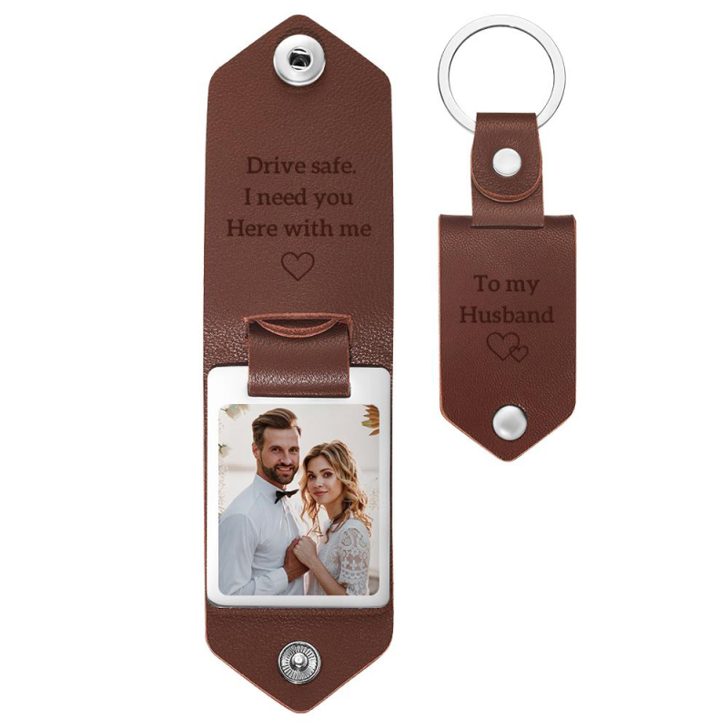 Gepersonaliseerde Leren Drive Safe Sleutelhanger Met Fototekst, Valentijnsdag Verjaardagscadeau Met Gegraveerde Tekst Voor Vriendje