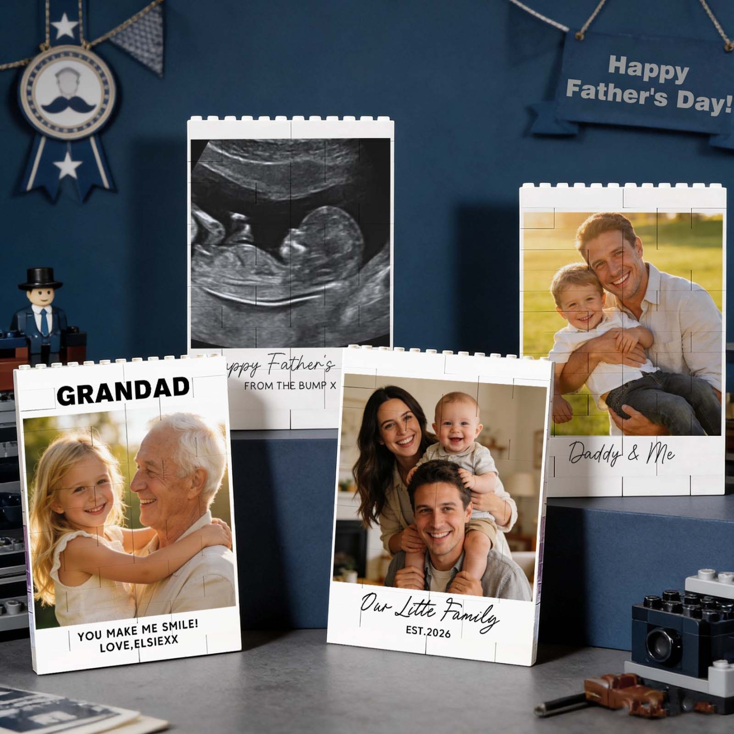 Gepersonaliseerde Vaderdagfoto Met Bouwblokken Voor Papa En Mij. 4 Opties Beschikbaar.