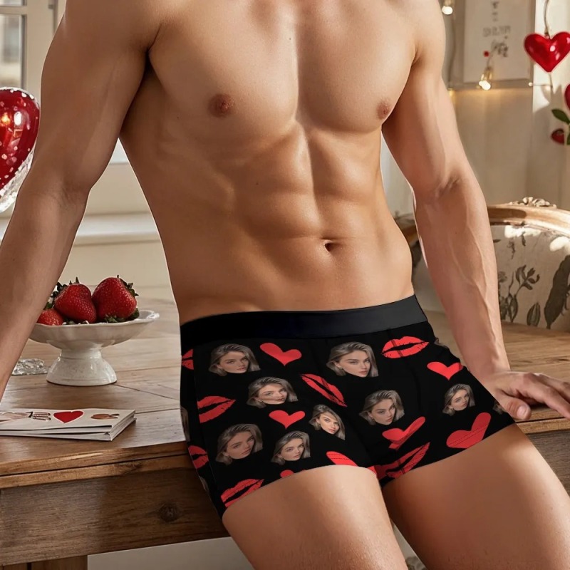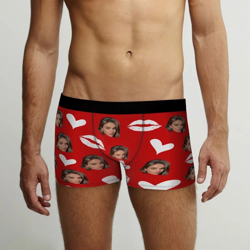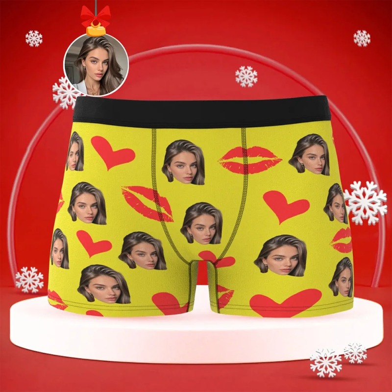 Gepersonaliseerde Rode Lippen, Ondergoed Op Maat, Ondergoed Met Foto Op Maat, Kerstonderbroekjes Met Foto Op Maat