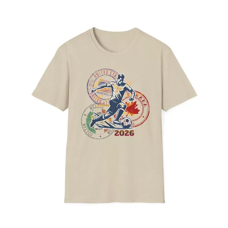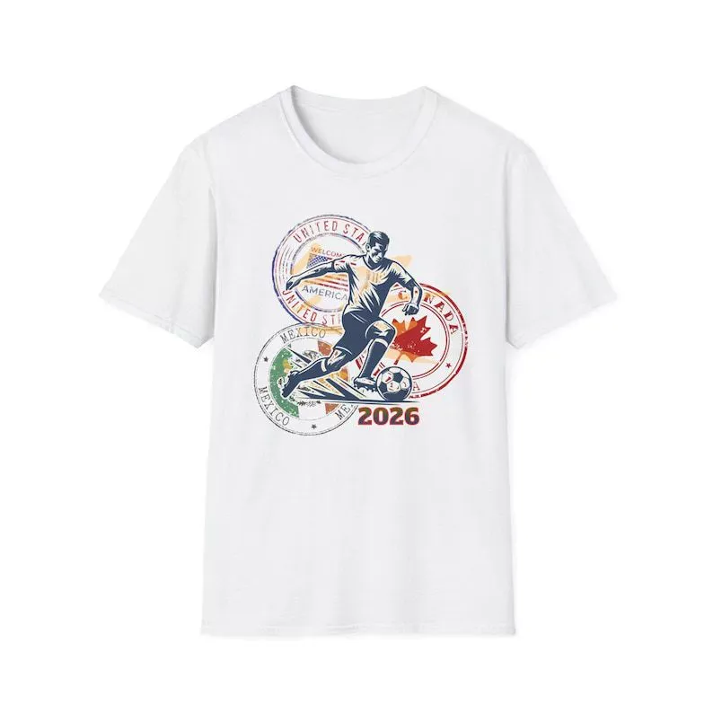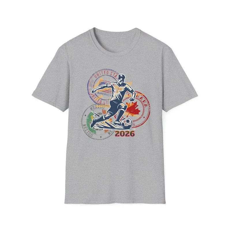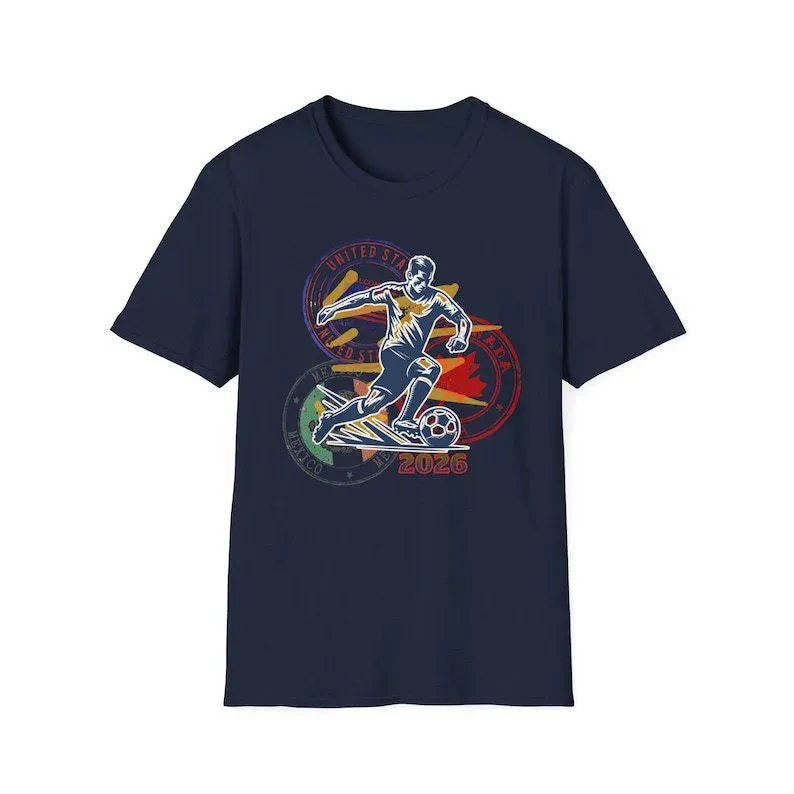 T-shirt Met Opdruk Van Voetbal Uit De Vs, Canada En Mexico, Van Katoen, Casual, Losse Pasvorm, Ronde Hals, Unisex, Ook Verkrijgbaar In Grote Maten.
